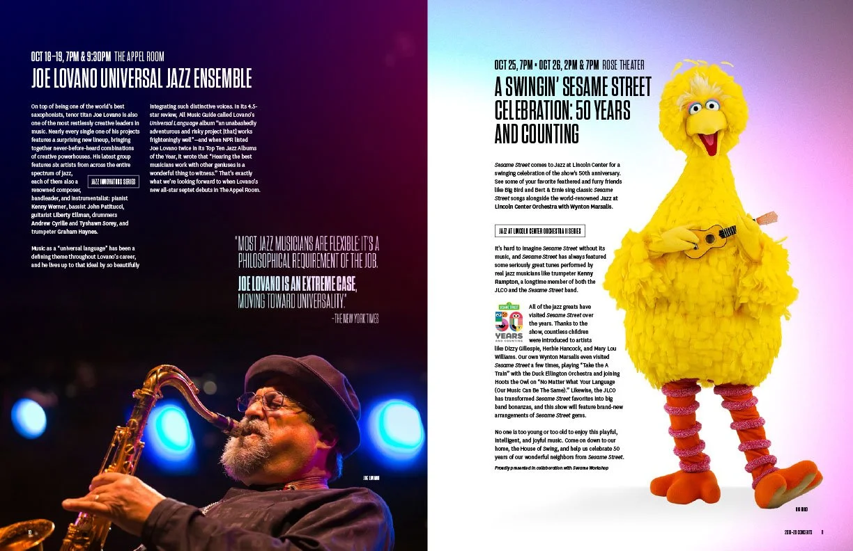 High-contrast, high energy. For the JALC Live Concert Season, we positioned legendary artists as modern icons. Through striking photography by Kwaku Alston and modular design systems, I created a cohesive visual narrative that lived everywhere—from the annual Season Book, microsite, video, experiential in-venue signage and design to outdoor advertising and subway takeovers across NYC. It’s more than a concert; it’s a cultural landmark.